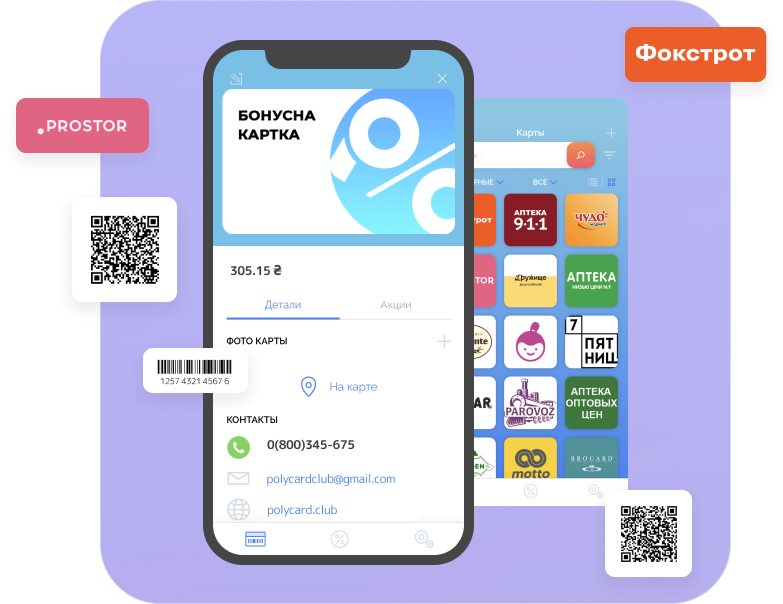 Polycard не конкурує з вашим мобільним додатком. Ми пропонуємо додатковий шлях клієнта до програми лояльності вашого бізнесу. Чим більше засобів бізнес пропонує для зберігання своєї бонусної картки, тим вище ймовірність, що клієнт нею скористається при покупці. Це сприяє виконанню найголовнішого завдання будь-якої програми лояльності – підвищує % покупок, що проходять за картками лояльності. А значить маркетинг отримує більше інформації про аудиторію і її поведінку.