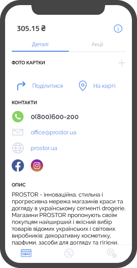 Після інтеграції, на сторінці торгових мереж в Polycard, користувачі знаходять всю необхідну інформацію таку як: адреси та час роботи, опис програми лояльності, сайт і соціальні мережі, актуальні акції та свій бонусний баланс по картці. Дайте своїм клієнтам Polycard і вони будуть дзвонити вам рідше.