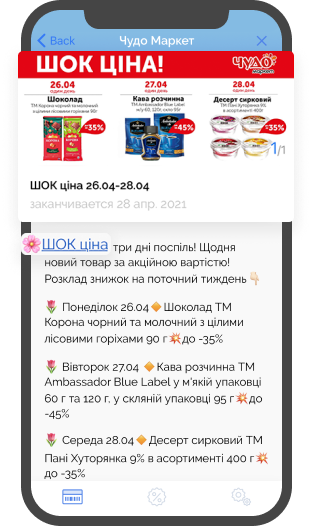 Тап на повідомлення автоматично перекине користувача на сторінку вашої акції в Polycard