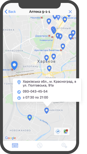 Polycard не просто надасть інформацію про вашу геолокацію, а доведе клієнта безпосередньо до вас, адже в додатку є можливість побудувати маршрут до торгової мережі.