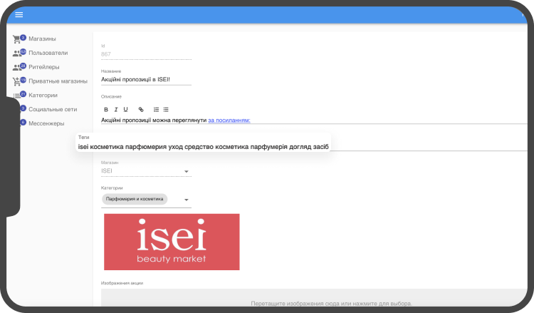 В кабінеті маркетолога, у вас буде можливість прив’язати акцію до певного магазину.